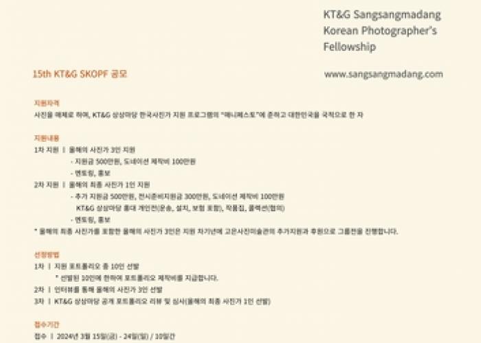 KT&G 상상마당, 한국사진가 지원 프로그램 '제15회 KT&G SKOPF' 공모