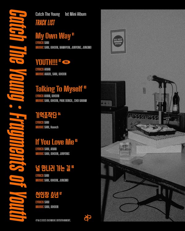 이어 캐치더영은 리릭 스포일러 이미지도 공개하며 팬들의 궁금증을 자극했다. 공개된 이미지는 'Fragments of Youth' 앨범 수록곡들의 일부 가사가 오선지 위에 멤버들의 손글씨로 적혀 있어 눈길을 끌었다.