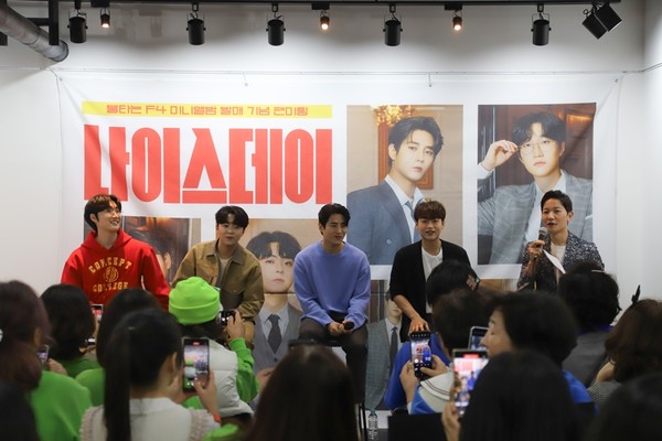 불타는 F4(민수현, 김중연, 박민수, 공훈)는 지난 30일 서울 스카이파크호텔 센트럴 명동점 카페 Lucky Ducky에서 첫 번째 팬미팅 '나이스데이'를 열고 팬들을 만났다.