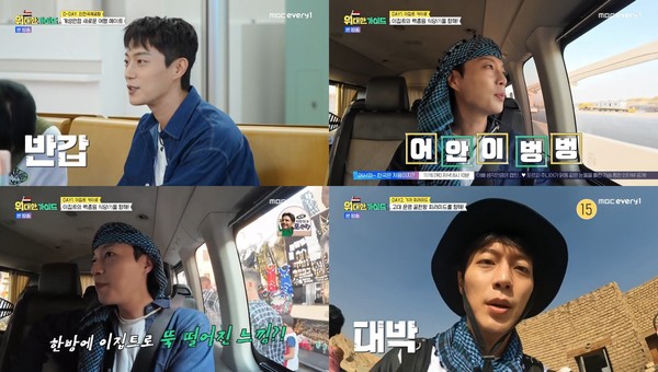 이후 새로운 여행 메이트가 합류해 완전체가 된 가운데 윤두준은 가이드 새미가 신현준의 아버지가 아랍 분이라고 확신하자 놀란 토끼눈을 뜨기도 해 웃음을 자아냈다.