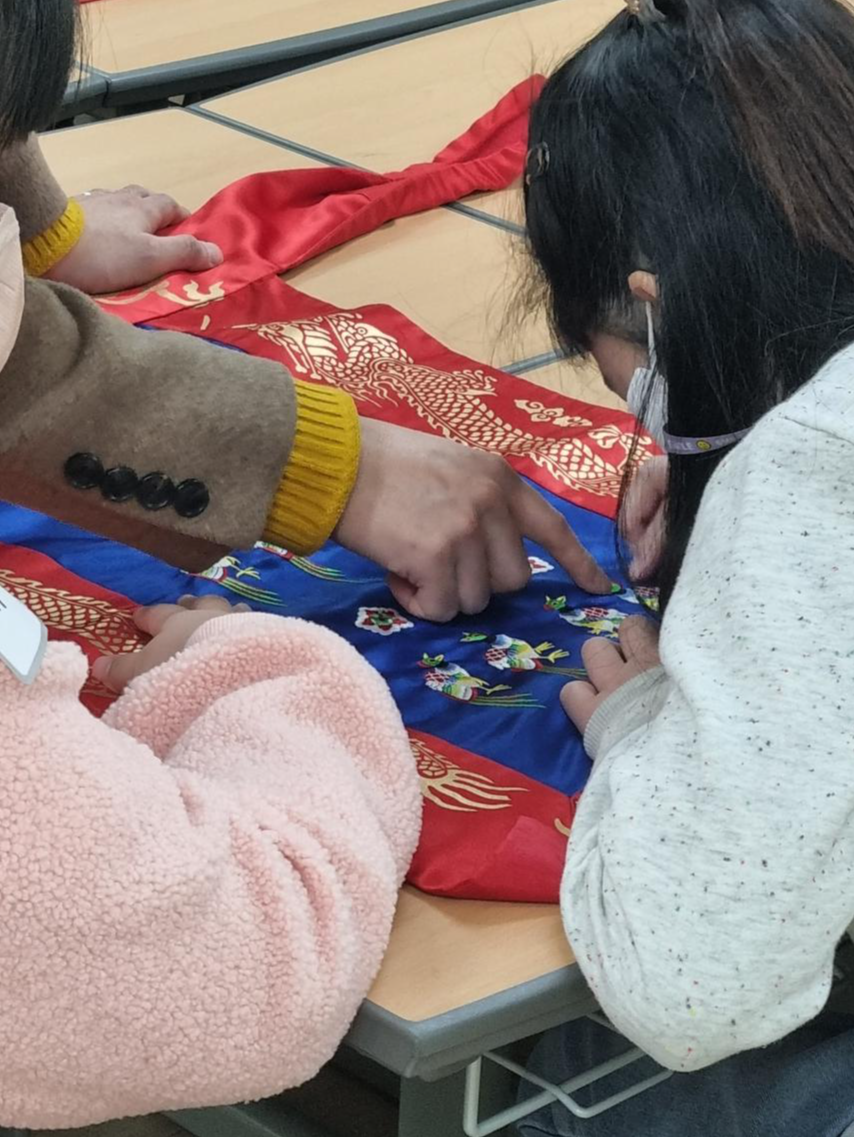 문화재청 국립고궁박물관은 지난 12월 5일(화) 국립고궁박물관(서울 종로구) 고궁배움터에서 ‘활옷 만개(滿開)-조선 왕실의 여성 혼례복’ 특별전(9.15.~12.13.)과 연계한 체험교육 프로그램을 서울맹학교(서울 종로구) 재학 시각 장애인 어린이를 대상으로 실시하였다.