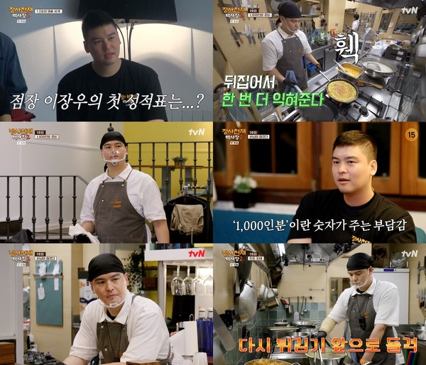이장우는 수준급 요리 실력과 재빠른 상황 판단 능력으로 한층 더 업그레이드된 ‘점장우’로 거듭났다. 김밥에 들어갈 지단을 완벽하게 부쳐내는가 하면, 날렵한 손놀림으로 닭강정을 튀기는 등 노련미(美)를 빛냈다.