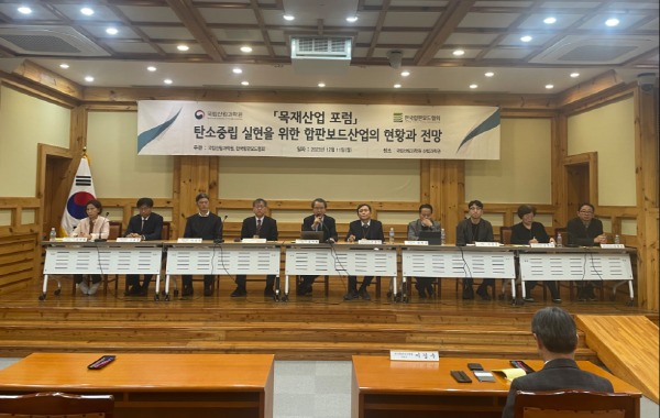 국립산림과학원 목재산업연구과 김명길 과장은 토론자로 참석하여 “탄소중립 실현을 위해서는 목재제품의 이용이 반드시 필요하며, 이는 합판보드산업이 발전할 기회가 될 것이다.”라며 “오늘 포럼에서 들은 일본의 사례를 바탕으로 산?관?학계 전문가들이 국내 합판보드산업의 나아갈 방향에 대해 한뜻을 모을 수 있었다.”라고 전했다.