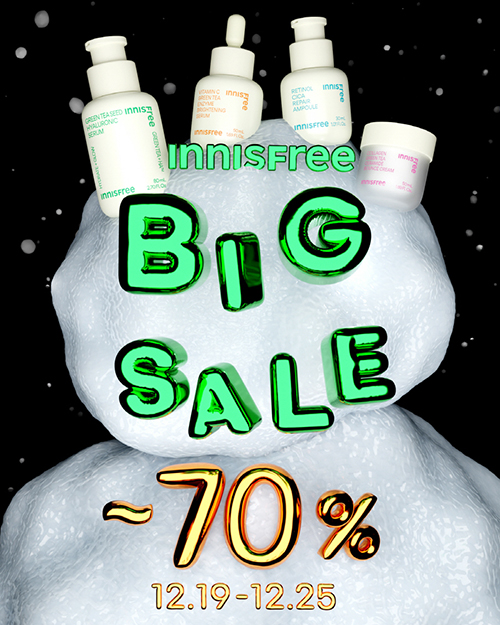 이니스프리 ‘12월 빅세일’은 이니스프리 회원이라면 누구나 최대 70% 할인과 다양한 이벤트를 누릴 수 있는 행사다. 특히 이번 ‘12월 빅세일’은 이니스프리를 사랑해주신 고객님들께 보답하는 마음을 담아 더 많은 혜택과 구성으로 준비했다.