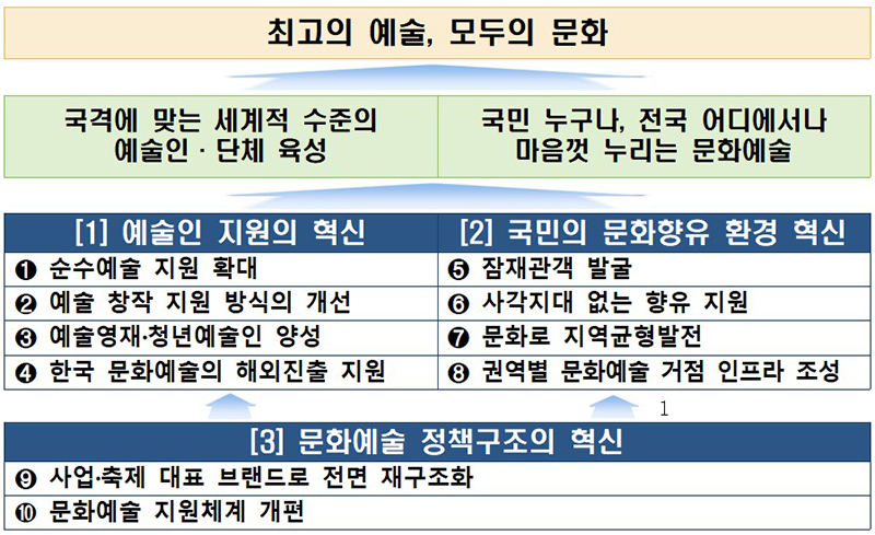 또한 문화예술 지원기관의 역할과 체계를 전면 재정립해 정책 추진력과 효과성을 높인다.