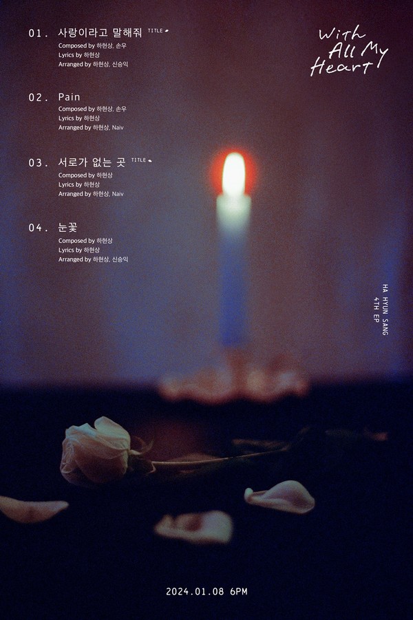 하현상은 지난 3일 공식 SNS를 통해 EP 4집 'With All My Heart (위드 올 마이 하트)'의 트랙리스트 이미지를 공개했다.