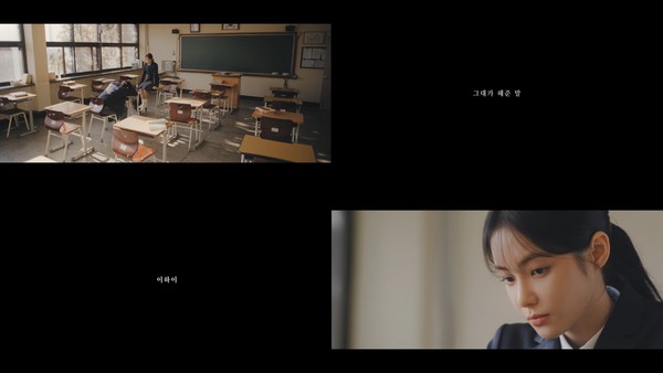영상은 시간을 역행하는 시계의 초침 소리로 시작됐다. 이어 따스한 분위기의 교실을 배경으로 배우 최현욱과 홍수주의 풋풋한 학창시절이 그려져 이목을 모았다.