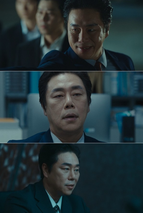 이어 Part 2에서 김법래는 안지형(오정세 분)에게 잡힌 채 경찰서에 앉아 있는 모습으로 등장했다. 때마침 자신에게 안지형을 처리하라는 부탁을 했던 박태우(김지훈 분)로부터 전화가 걸려왔지만 직접 받지 못하는 상황에 답답해하며 못마땅한 표정을 지어 보였다.