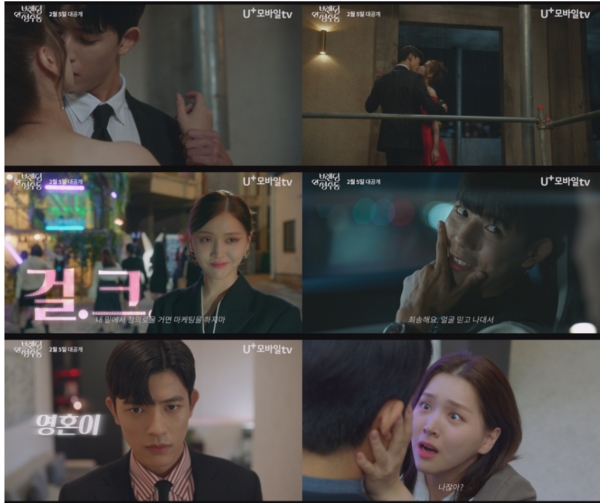화려한 드레스를 입은 김지은(강나언 역)과 댄디한 정장 차림의 로몬(소은호 역)이 파티에 나선 듯한 복장과는 달리 조금은 외진 공간에서 입맞춤을 하게 된 경위가 호기심을 자극한다.