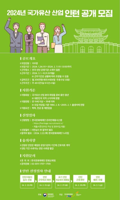 2024년 국가유산 산업 분야 청년 인턴 공개 모집(1.24.∼2.7.)