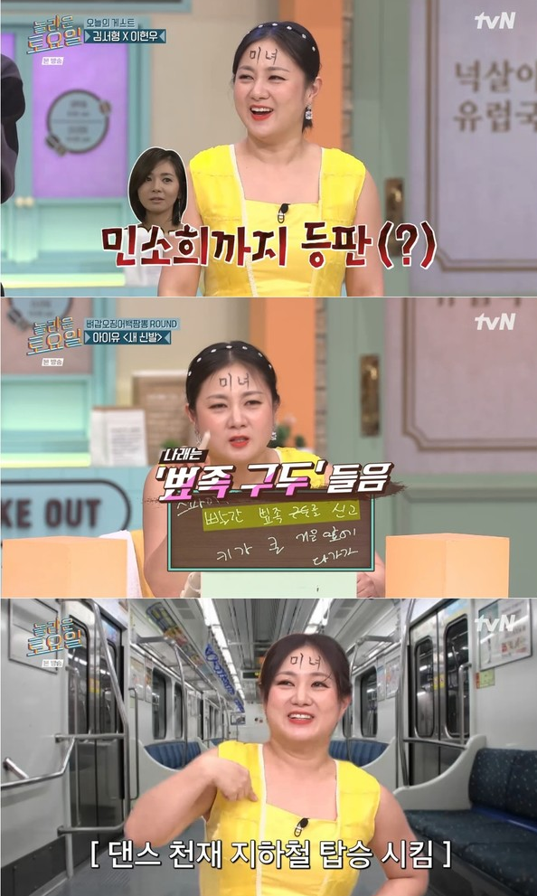 2차 시도 끝에 정답을 맞히고 간식 게임에 들어선 박나래는 ‘음성 지원 게임’에서 장동건의 명대사를 연기하기 위해 칼과 폭탄을 맞다가 갑자기 춤을 췄고, MC 붐의 연기 지시에 별안간 지하철 타는 연기까지 이어지면서 모든 것을 소화해내 천생 예능인임을 입증했다.