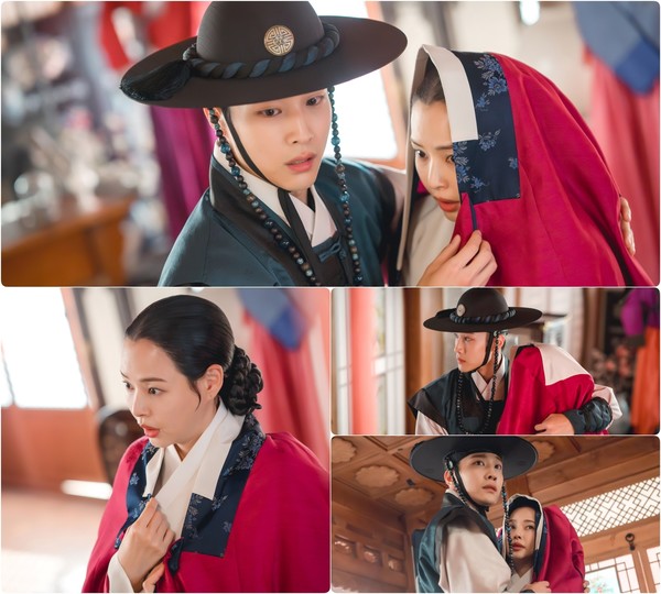 수호는 갑자기 나타난 누군가로부터 여화를 지키려 쓰개치마로 잽싸게 얼굴을 가린다.