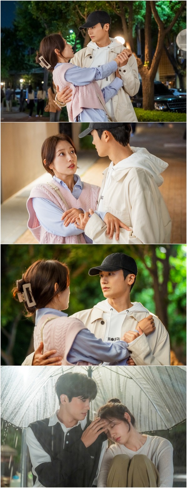 그런 가운데 공개된 사진 속, 남하늘과 여정우의 부쩍 가까워진 거리감이 보는 이들의 마음을 간질인다. 먼저 밤거리를 걷던 중 남하늘이 넘어질 뻔한 상황, 여정우가 그를 품에 감싸 안은 모습이 이목을 집중시킨다.