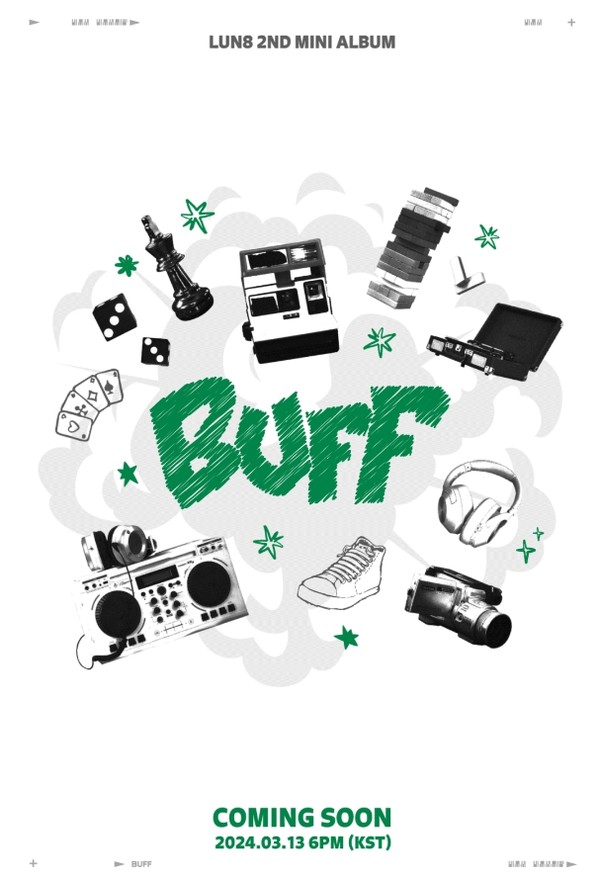 게임에서 능력치를 증가시키는 효과를 뜻하는 앨범명 ‘BUFF’를 중심으로 포커 카드, 체스, 주사위, 젠가 등 다양한 게임용품이 등장했다. 캠코더, 신발, 헤드폰, 턴테이블 등 일상적인 아이템 역시 눈길을 끌었다.