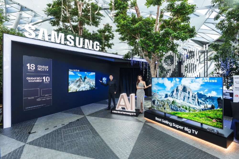 삼성전자가 3월 28일 싱가포르공항 ‘쥬얼 창이’에서 TV 신제품 체험존을 오픈하고, 2024년 Neo QLED·삼성 OLED·라이프스타일 TV 신제품을 공개하는 행사를 가졌다.