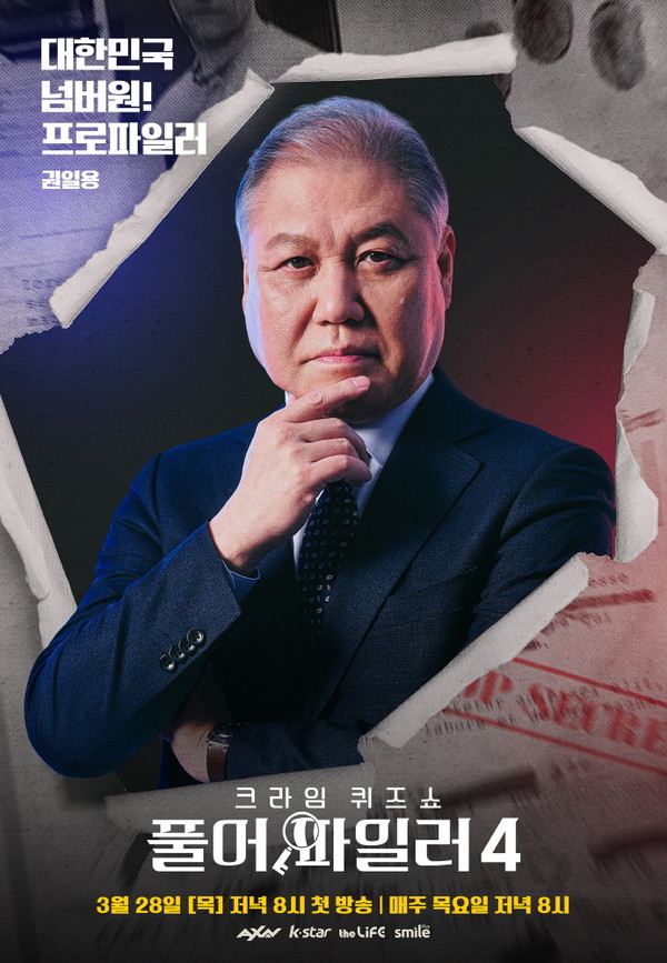 '풀어파일러4'의 수장이자 대한민국 넘버원 프로파일러 권일용의 캐릭터 포스터가 공개됐다. 이와 함께 권일용이 대망의 시즌4 론칭을 앞둔 각오를 밝혀 이목을 집중시킨다.