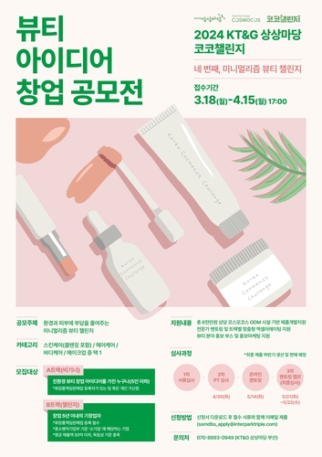 KT&G 상상마당이 친환경 뷰티 분야의 창업지원을 위해 '2024 KT&G 상상마당 코코챌린지(Korea Cosmetics Challenge)' 참가자를 오는 4월 15일까지 공개모집한다.