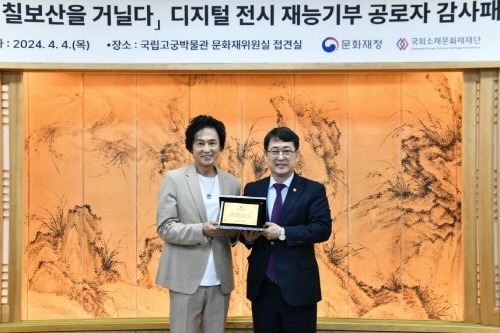 문화재청, ‘칠보산도병풍 영상전’ 음악 기부한 작곡가 양방언에 감사패 수여
