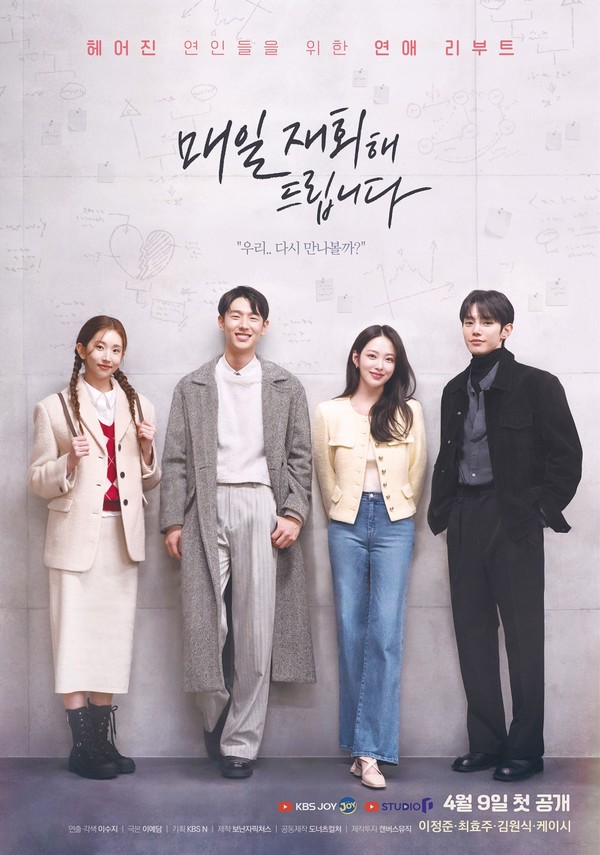 케이시가 첫 주연을 맡은 KBS N 웹드라마 '매일 재회해 드립니다(극본 이예담 / 연출·각색 이수지 / 기획 KBS N / 제작 보난자픽쳐스 / 공동제작 도너츠컬처)'가 9일 오후 6시 30분 KBS Joy 유튜브, 오후 7시 30분 스튜디오:D 유튜브 채널에서 첫 공개된다.