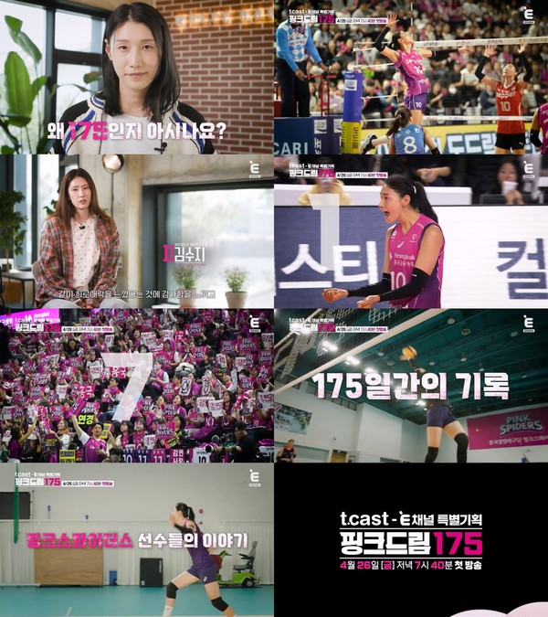 ‘배구 황제’ 김연경을 비롯해 코트 위 핑크스파이더스 선수들의 모든 여정이 담길 티캐스트-E채널 특별기획 '핑크드림175'는 오는 4월 26일(금) 저녁 7시 40분 E채널·채널뷰·MX에서 첫 방송된다.(사진제공=티캐스트)