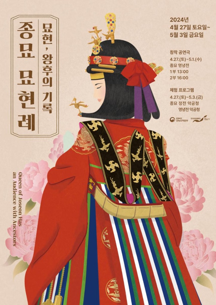 문화재청 궁능유적본부는 한국문화재재단과 오는 27일부터 5월 3일까지 7일간 종묘 일원(서울 종로구)에서 「2024년 종묘 묘현례」관련 행사를 개최한다.
