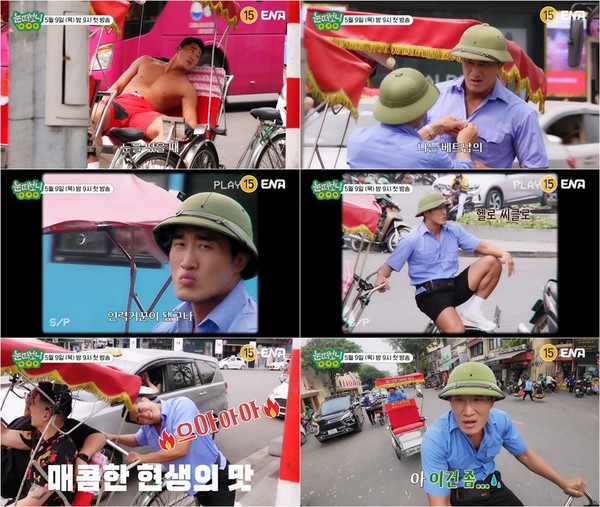 뒤이어 리얼 인력거꾼으로서 매콤한 현생을 보내는 김동현의 일상이 시선을 강탈한다. 김동현은 "헬로 씨클로(인력거)"라고 외치며 호객을 하는가 하면, "피지컬 싸이클!"을 부르짖으며 육중한 인력거를 밀고 끌고 당기며 끙끙거리는 모습.