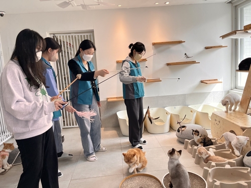 한국마사회 임직원 봉사단 '한국마사회 엔젤스'는 지난 17일 용산구 이촌동의 유기묘(猫) 보호소 '나비야사랑해'를 방문해 동물학대 피해를 입은 고양이를 돌보는 시간을 가졌다.