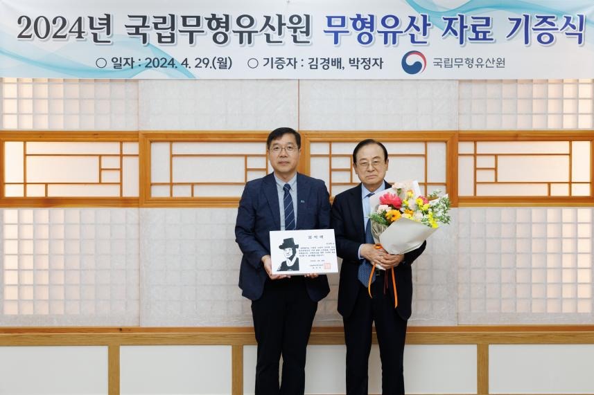 문화재청 국립무형유산원은 지난 4월 29일 국립무형유산원(전북 전주시)에서 국가무형유산 관련 자료 기증자들을 초청해 ‘무형유산 자료 기증식’을 진행했다. 작년 한 해 동안 기증된 자료는 고(故) 김월하 가곡 보유자의 유품을 비롯해 김경배 가곡 보유자와 박정자 단청장 명예보유자의 소장자료 등 총 87건(121점)이다.