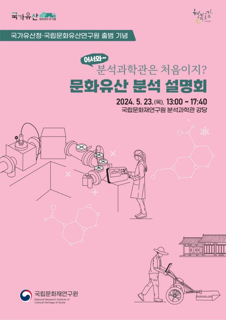 문화재청 국립문화재연구원은 국가유산청(‘24.5.17.)과 국립문화유산연구원(‘24.5.17.) 출범에 맞춰 오는 5월 23일(목) 오후 1시 국립문화재연구원(대전 유성구) 분석과학관 강당에서 문화유산 연구·종사자를 대상으로 최신 분석기술과 현장 적용 사례를 소개하는 『어서와!~ 분석과학관은 처음이지? : 문화유산 분석설명회』를 개최한다.