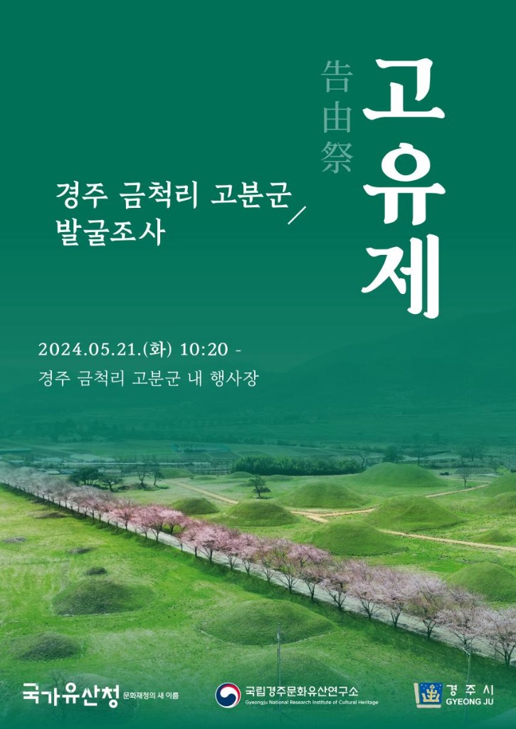 최응천 국가유산청장, 경주시 및 학계 관계자들, 지역민 등이 참석하는 가운데 경주향교(전교 이종암)의 집례로 거행되는 이번 고유제는, 조사단의 안전을 기원하고, 금척리 고분군의 첫 학술발굴조사를 축하하기 위해 국악브라스밴드 시도(XIIDO)의 식전공연을 시작으로, 국가유산청 출범 홍보영상을 비롯하여 신비한 금자(金尺) 이야기, 금척리 고분군에 관한 인터뷰 영상 상영, 고유제 봉행 등의 순서로 진행된다.