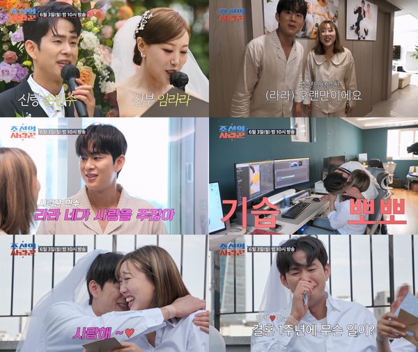 3일(월) 방송될 ‘조선의 사랑꾼’에는 임라라, 손민수 커플이 오랜만에 근황을 전한다. 지난해 5월 21일 성대한 결혼식을 올린 두 사람은 수많은 하객의 축복 속에 부부가 됐다.