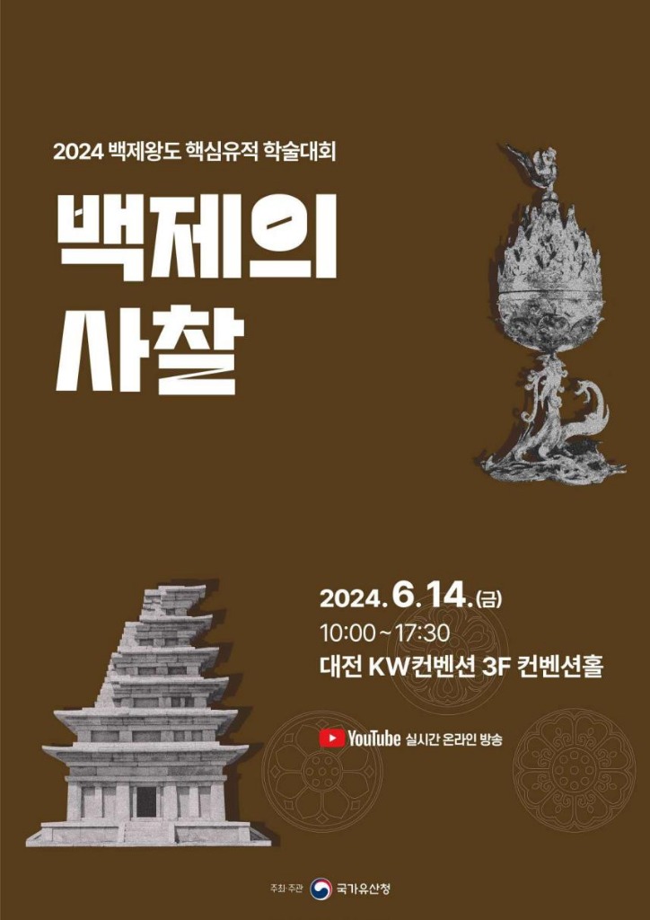 국가유산청은 6월 14일 오전 10시 대전 KW컨벤션(대전 서구)에서 「백제의 사찰」을 주제로 2024년 백제왕도 핵심유적 학술대회를 개최한다.