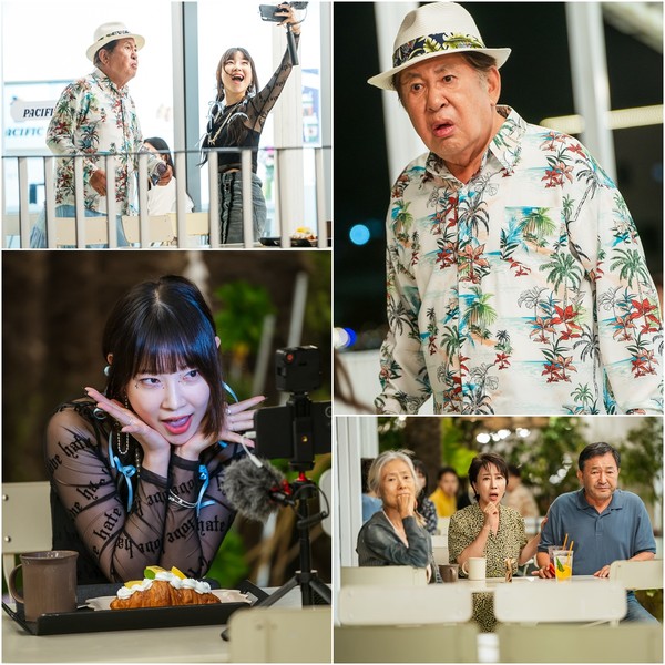 공개된 스틸에는 거제도의 한 카페에 일제히 모인 김용건, 예수정, 임채무, 송옥숙 ‘시니어 4인방’의 모습이 담겼다. 한쪽 구석에는 유명 크리에이터로 변신, 핸드폰을 앞에 두고 라이브 방송을 진행 중인 배우 김아영의 모습이 담겨 있어 놀라움을 자아낸다.