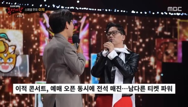 이적은 지난 29일 방송된 MBC 음악 프로그램 ‘복면가왕’에 출연해 스페셜 무대를 꾸몄다.