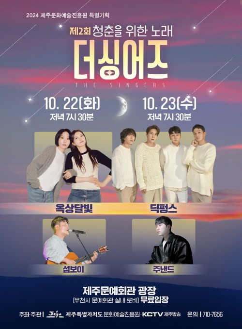 제주문화예술진흥원이 KCTV제주방송과 공동 기획으로 제주문예회관 광장에서 ‘제2회 더 싱어즈 ’ 야외음악회를 개최한다.