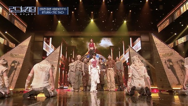시작부터 강렬한 임팩트로 시선을 사로잡은 8TURN은 'TIC TAC' 뮤직비디오의 모티브였던 이집트 신화 속 '죽음의 신 아누비스'를 차용해 ‘탈락할 위기에 놓였지만 꼭 살아남겠다’는 간절한 생존 의지를 담은 무대를 완벽하게 소화하며 관객들의 뜨거운 환호를 받았다.