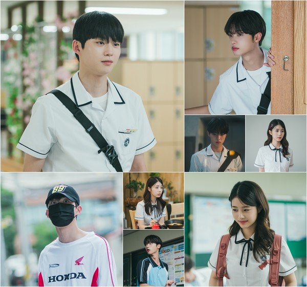 먼저 비밀을 품고 있는 가언고 전학생 이동민 역으로 분한 최건은 앞에 서 있는 누군갈 향해 슬며시 웃어 보인다. 그의 미소가 보는 이들까지 절로 미소 짓게 만들며 스틸만으로도 그가 이동민 캐릭터를 어떻게 구현해 낼지 호기심이 치솟는다.