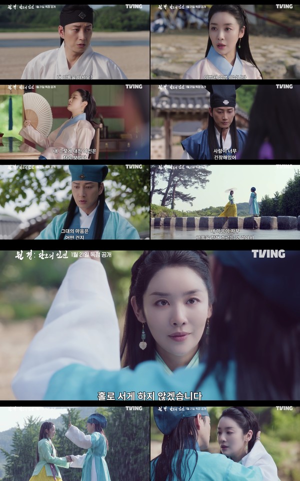 고려 말, 부부이기 이전에 연인이었던 두 사람의 사랑을 그린 2부작으로, 오는 21일 티빙 독점 공개를 앞두고 있다.