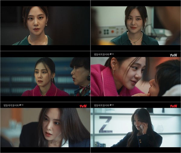 지난 1일(토), 2일(일)에 방송된 tvN 토일드라마 ‘별들에게 물어봐’(극본 서숙향, 연출 박신우, 기획 스튜디오드래곤, 제작 키이스트∙MYM엔터테인먼트) 9, 10회에서 한지은은 약혼남에게 배신당한 캐릭터의 참담한 심정을 3단 연기 변주로 그려내며 극에 흥미를 배가시켰다.