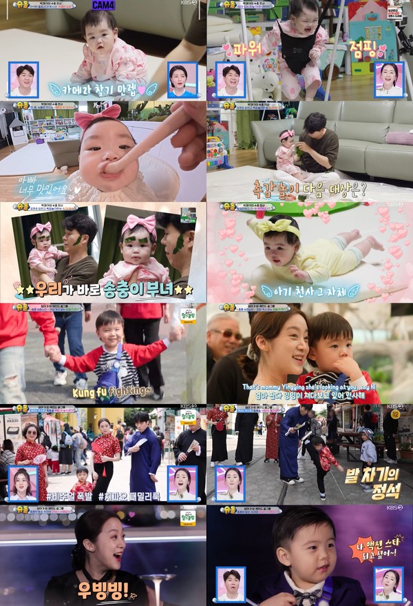 이중 박수홍과 재이 부녀는 신나는 댄스타임을 가지며 이목구비부터 흥까지 쏙 빼닮은 ‘붕어빵 부녀’의 면모를 자랑했고, 우혜림 아들 시우는 차세대 액션 스타다운 퍼포먼스로 시청자들을 사로잡았다.
