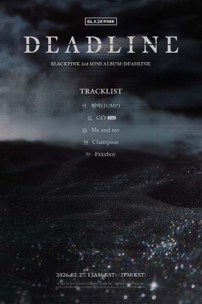 6일 YG엔터테인먼트에 따르면 블랙핑크의 미니 3집 [DEADLINE]은 총 5개 트랙으로 구성됐다. 선공개곡 '뛰어(JUMP)'를 시작으로 타이틀곡 'GO', 'Me and my', 'Champion', 'Fxxxboy'가 차례로 담겼다.
